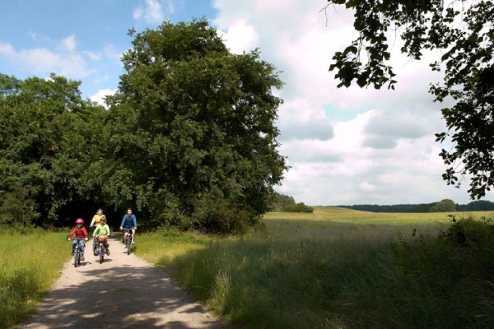Der Radweg ist mit grünen Schildern „Radweg Berlin-Usedom-Wollin-Stettin“ gekennzeichnet.