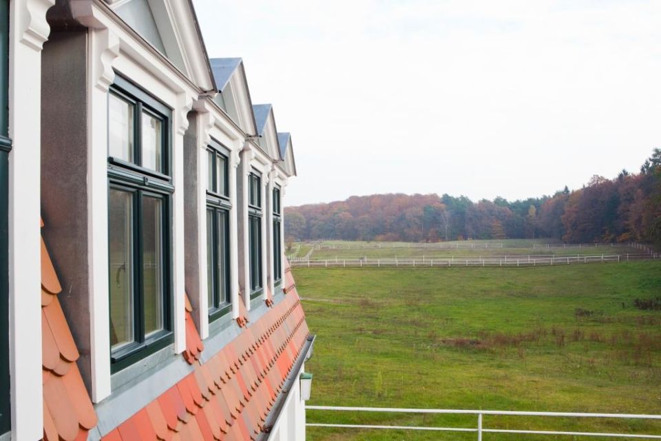 Idyllisch eingebettet am Tor zur Schorfheide ist das Gut der ideale Ausgangspunkt für Ausflüge durch die Schorfheide. Ob Touren durch die verschwiegenen Wälder und weitläufigen Wiesen oder Badespaß in den glasklaren Seen – für Radfahrer, Wanderer und Naturfreunde gibt es hier viel zu erleben. Und auf dem Gestüt, das an Hotel und Restaurant angrenzt, kommen Pferdenarren auf ihre Kosten. Das Hotel mit seinen gemütlichen Zimmern, die im französischen Landhausstil eingerichtet sind, lädt zum Entspannen inmitten der Natur ein. Bei offenem Fenster schlafen, dem Vogelgezwitscher lauschen und die frische, klare Luft einatmen. Das Hotel Gut Sarnow ist inmitten von Wiese und Wald sehr ruhig gelegen. Alle Zimmer sind liebevoll ausgestattet; keines ähnelt dem anderen. Farblich sind die Zimmer in hellen Grün-, Blau- und Beigetönen gestrichen und mit Landhaus-Möbeln aus gekälkter Eiche eingerichtet. Durch den Holzboden bzw. den Vinylbelag in Holzoptik wirken die Räume freundlich und behaglich. Alle Zimmer verfügen über ein Bad (größtenteils mit Fenster; die Zimmer im Erdgeschoss haben ein Badewanne) und einen Flachbild-Fernseher. Täglich gibt es ein vielfältiges Frühstücksbuffet. Auf der Speisekarte des Restaurants stehen frische Gerichte aus der Region, insb. Spezialitäten vom Wild aus der hauseigenen Jagd. Mit Blick auf die Pferdekoppeln und den umliegenden Wald lädt das Restaurant zum Verweilen ein. Wenn die Sonne scheint, ist die Terrasse der ideale Ort zum Entspannen. Bei schlechtem Wetter bietet der rundum verglaste Wintergarten eine großartige Sicht auf die Koppeln und den Waldrand – oder Sie machen es sich am Feuer in unserem Kaminzimmer gemütlich.