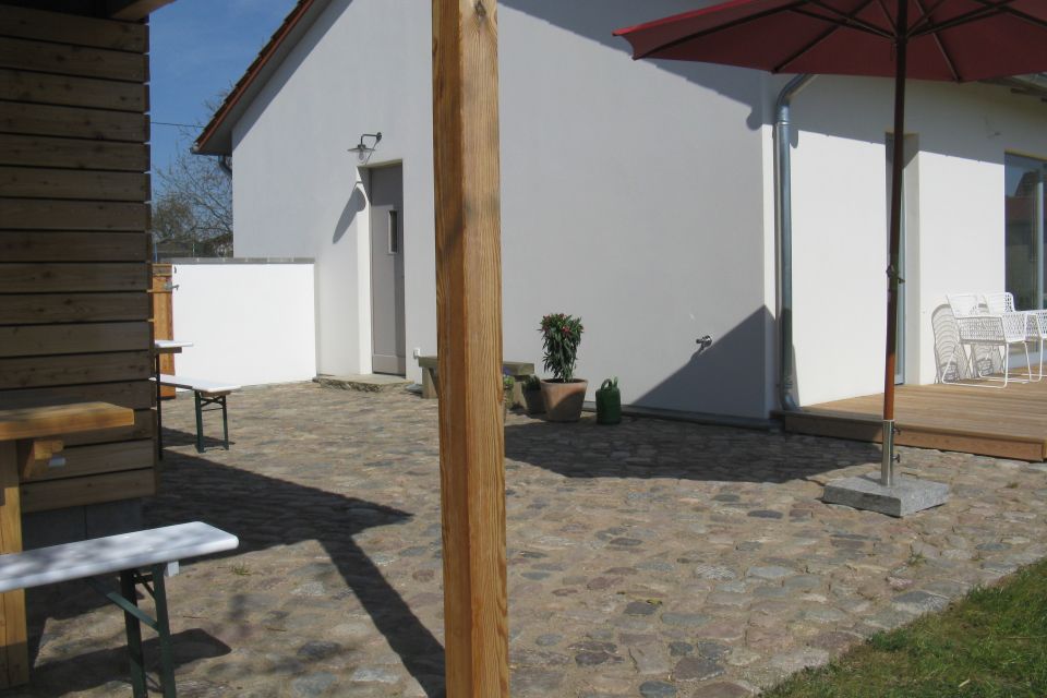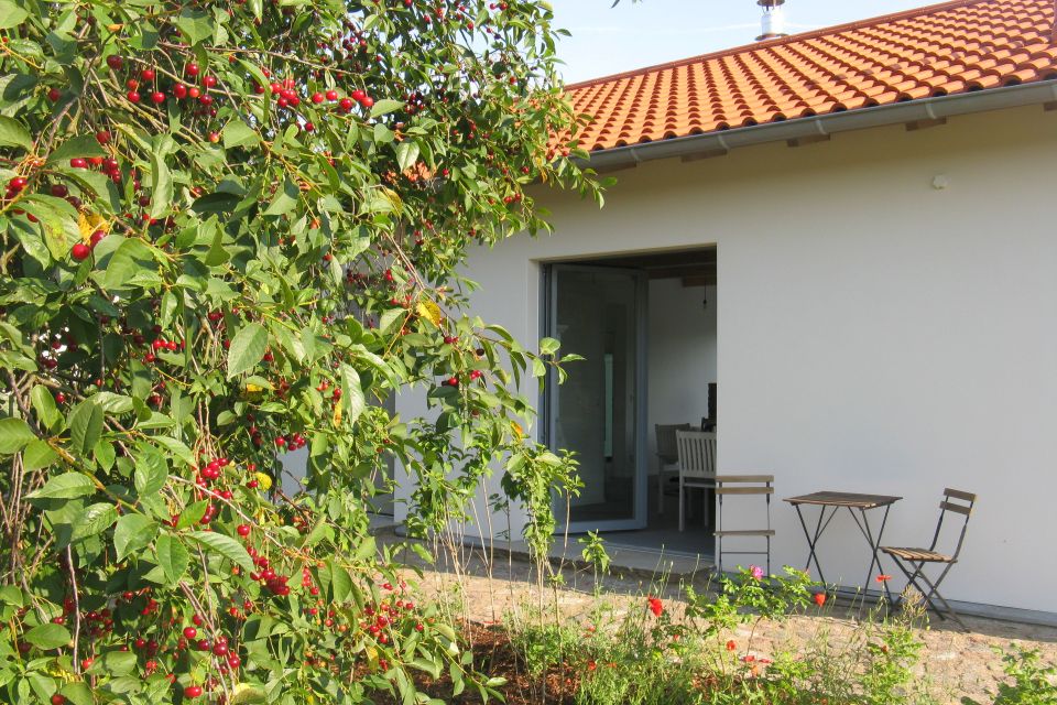 Lage und Ausstattung: Kranichdorf Parlow, ländlich, unberührte Natur, Naturgrundstück (1700m²) mit alten Obstbäumen, behagliche Wand- oder Fußbodenheizung in allen Räumen, Sauna, Wohn- und Esszimmer, dänischer Kamin, zwei Schlafzimmer mit Doppelbett bzw. zwei Einzelbetten, Kühlschrank mit Gefrierfach, WLAN, modernes Bad mit Dusche, Terrasse/Garten mit windgeschütztem Sitzplatz