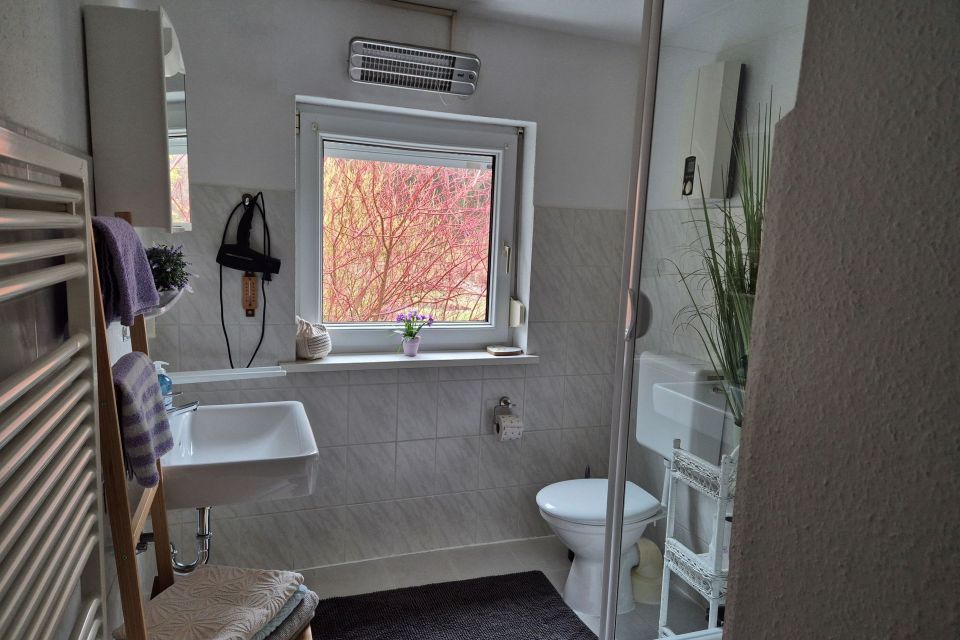 Lage und Ausstattung: Ortsmitte, ruhig und zentral, Nähe Bahnhof und Grimnitzsee, vollausgestattete Küche mit Gefriermöglichkeit und Geschirrspüler, Waschmaschine und Trockner, Wohn-/Schlafräume getrennt über 2 Etagen, Terrasse/Garten mit windgeschütztem Sitzplatz, separater Eingang, Parkplatz, WLAN