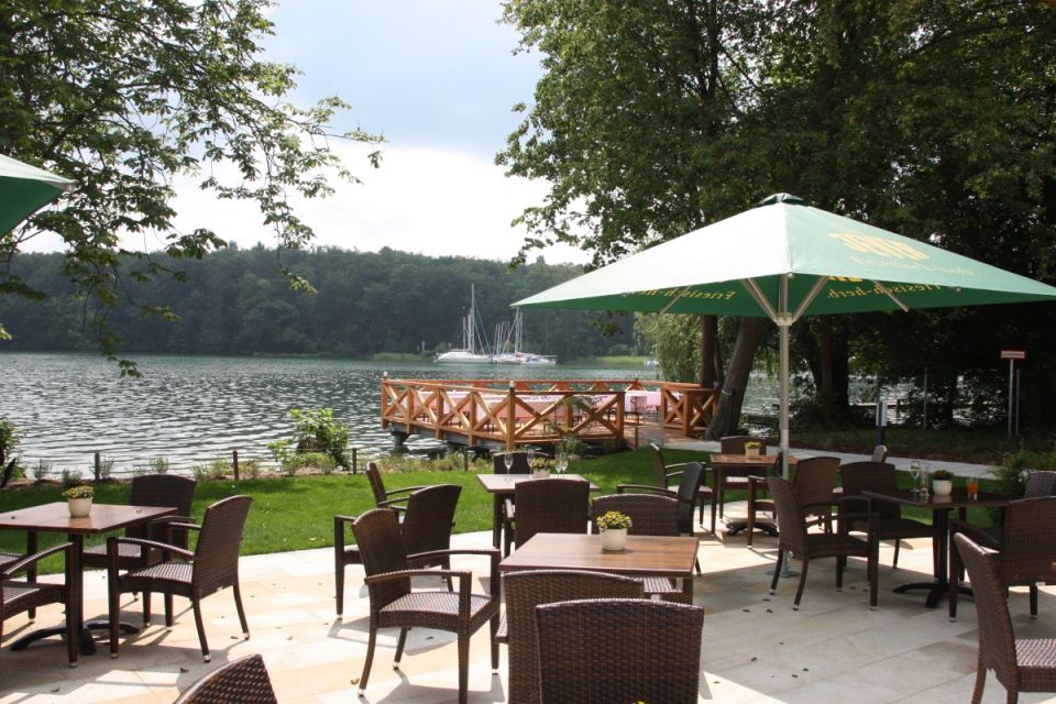 Auf der Steg- und Sommerterrasse genießen Sie einen herrlichen Ausblick auf den kristallklaren Werbellinsee.