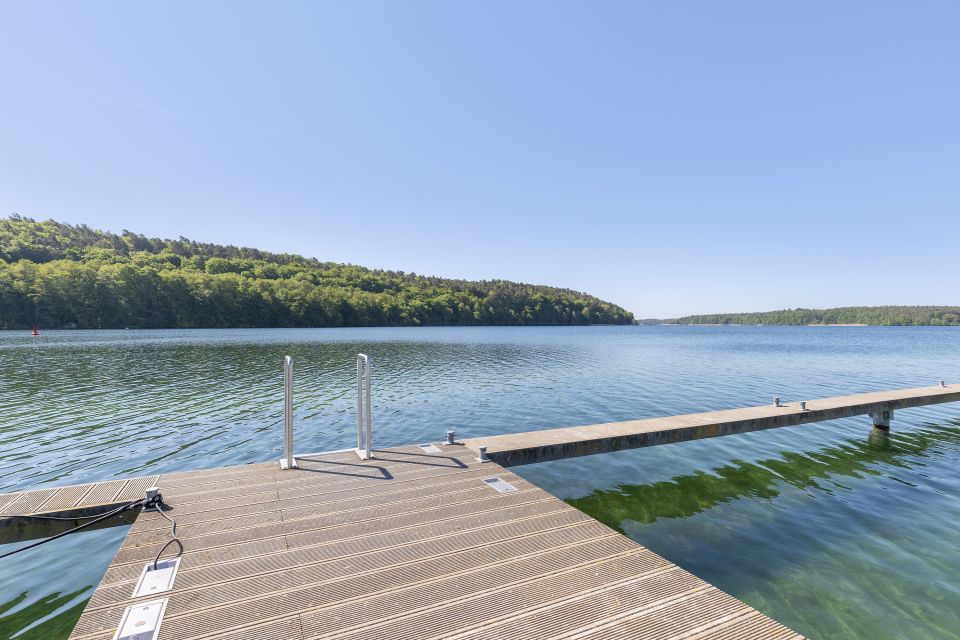 Die Ferienwohnung hat eine Größe von ca. 45 qm und eignet sich für bis zu 4 Personen + Babybett bei Bedarf. Die Wohnküche im Erdgeschoss ist voll ausgestattet inkl. Smart-TV. In einem Schlafzimmer befindet sich ein Doppelbett, im zweiten Schlafzimmer zwei Einzelbetten und ein Smart-TV. Bettwäsche und Handtuchpaket sind inklusive. An allen Fenstern sind Fliegengitter angebracht. Fußbodenheizung in allen Räumen. Im Badezimmer gibt es WC und Dusche mit Regenbrause, sowie einen Föhn. Die Terasse ist überdacht und verfügt über eine Markise. Von hier aus hat man einen wunderschönen Blick auf den See.