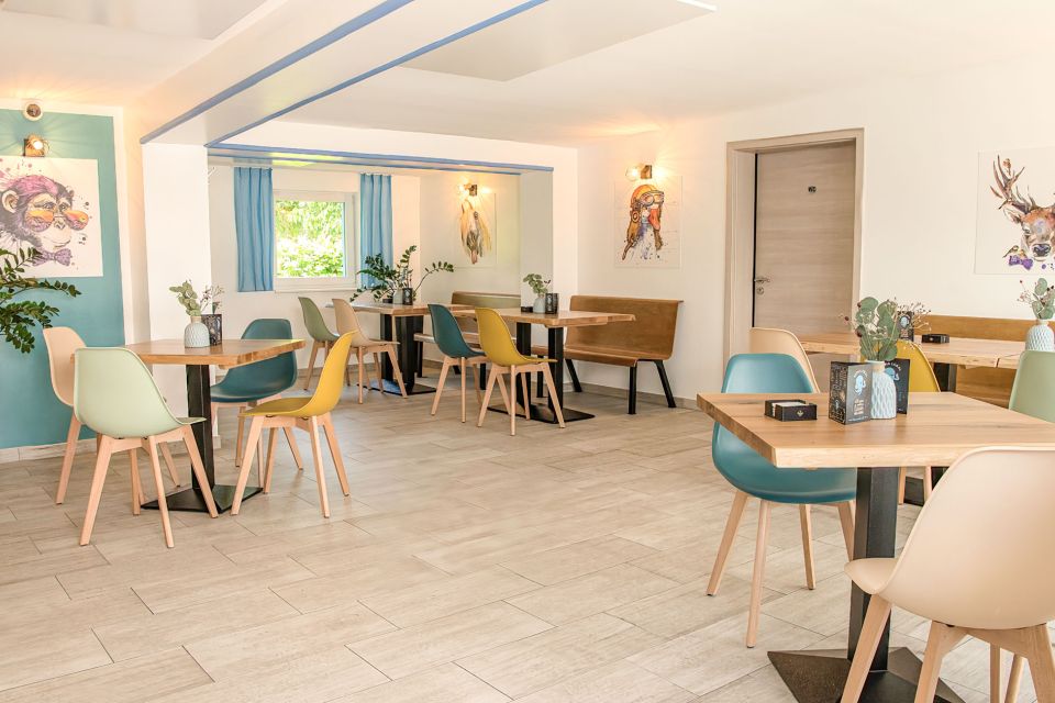 Das Lokal in modernem Ambiente befindet sich in unmittelbarer Nähe zum naturbelassenen See, Wanderwege und einen Fahrradrundweg. Die Liegewiese ist 250 Meter entfernt. Die Küche serviert leckere Pizza aus dem Steinofen. Besondere Höhepunkte für alle, die auf der Suche nach etwas Süßem sind, bieten die frisch gebackenen Waffeln, Kuchen sowie das hausgemachte Softeis. Dazu stehen neben Softdrinks diverse Kaffeespezialitäten bereit.