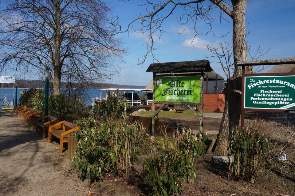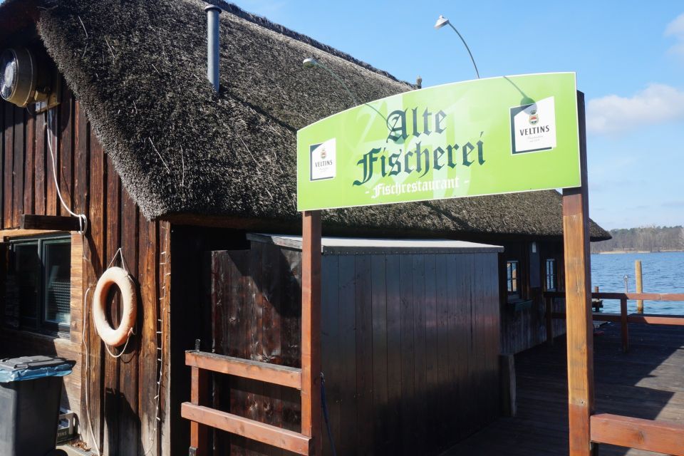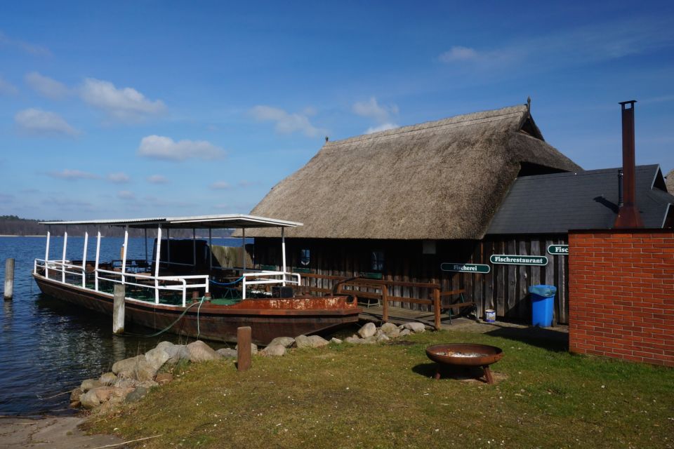 Die urige, reetgedeckte Fischerkate befindet sich auf einem Pfahlbau direkt auf dem Werbellinsee. Die rustikale Einrichtung mit der fischereitypischen Dekoration verfügt über 70 Sitzplätze im Innenraum und 80 Plätze an Tischen auf der Terrasse über dem Wasser. An kaum einer anderen Stelle haben Gäste einen so herrlichen Blick auf den See.
