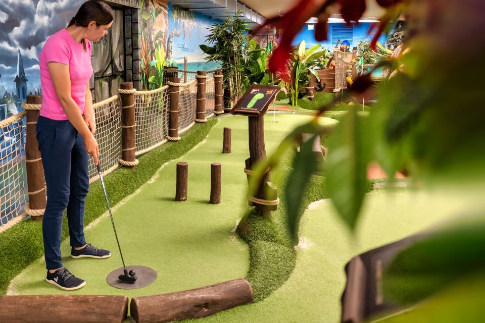Langweilige, gerade Bahnen? Nicht im Peter Pans Adventure Golf. Hier warten 18 fantasievolle Parcours mit Hindernissen, die selbst Profis ins Grübeln bringen, und Naturkulissen, die so schick sind, dass man kurz vergessen könnte, dass man hier zum Golfen ist.