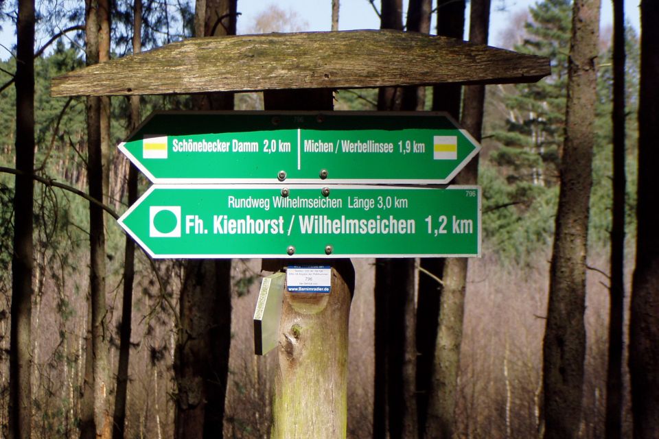 Wegbeschreibung: Die Tour beginnt an der Schorfheide-Info in Joachimsthal und führt über den Joachimsplatz zum Abzweig Schulseerundweg mit der alten Apfelallee. Zunächst wandert man durch Feldlandschaft, dann durch herrlichen Kiefernwald, vorbei an den Michenwiesen und mit Kiefern locker bewachsenen Dünen in Richtung Nordspitze Werbellinsee und auf dem Radweg von der Seerandstraße zurück in die Stadt.